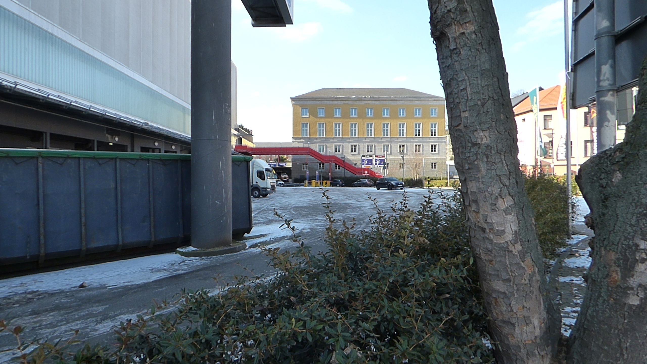 Unmittelbar an das ehemalige Gauforum angrenzend befindet sich die Baustelle für das neue Bauhaus-Museum, was pünktlich zum Bauhaus-Jubiläum 2019 eröffnet werden soll.