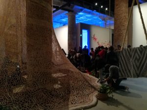 In der Ausstellungshalle sah ich dann noch sehr viel andere schamanisch inspirierte Kunst, die auch eine gewisse Vorliebe für textiles Kunsthandwerk aufwies. Nicht allen Werken gelang es dabei, das Tor zwischen den Bewusstseinsebenen zu öffnen, manches blieb auch der bloßen Unterhaltung, dem schönen Schein, verhaftet. Inspirierend war es allemal und mich hat an dieser Stelle die Biennale schlicht begeistert.