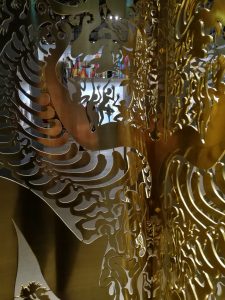 Bevor ich selbst wieder in das dunkle Venedig verschwand, hatte ich noch Zeit, mir den chinesischen Pavillon anzuschauen. Thematisch beschäftigte sich dieser mit traditionellen Künsten, wie z. B. dem Scherenschnitt und dem Schattenspiel.