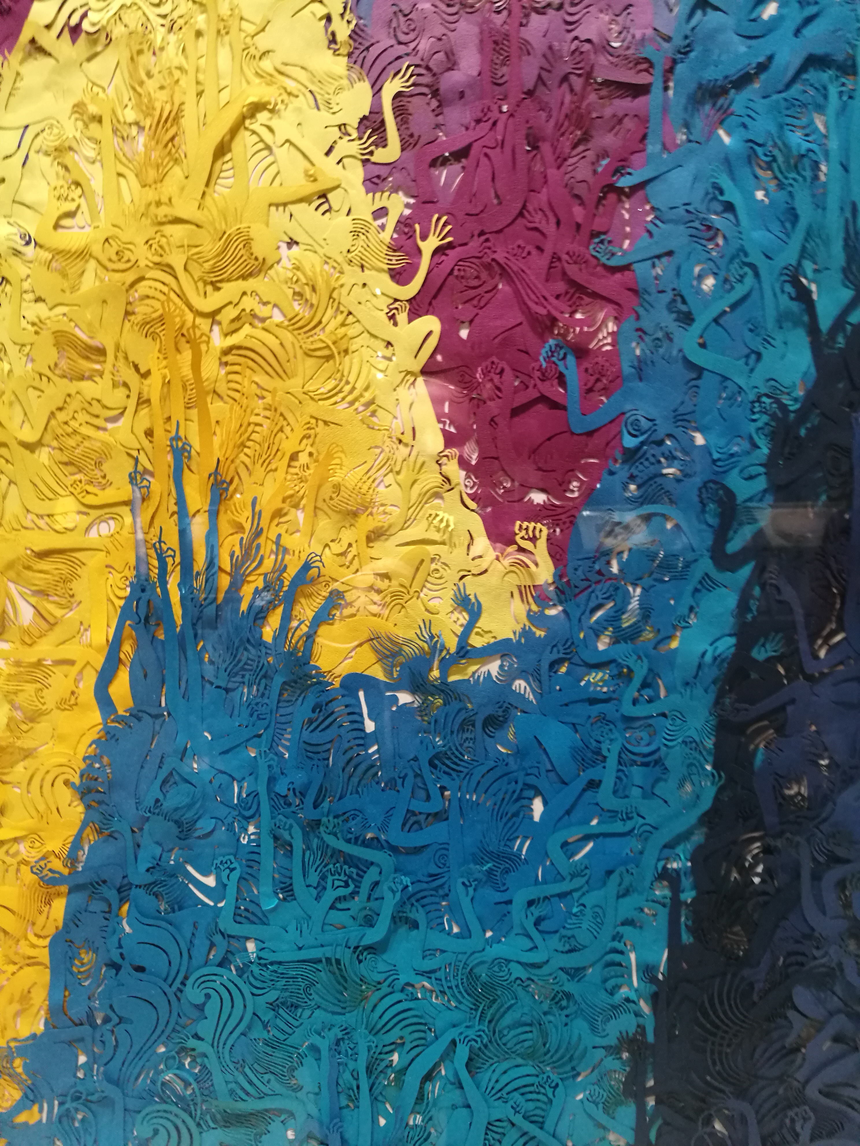 Bevor ich selbst wieder in das dunkle Venedig verschwand, hatte ich noch Zeit, mir den chinesischen Pavillon anzuschauen. Thematisch beschäftigte sich dieser mit traditionellen Künsten, wie z. B. dem Scherenschnitt und dem Schattenspiel.