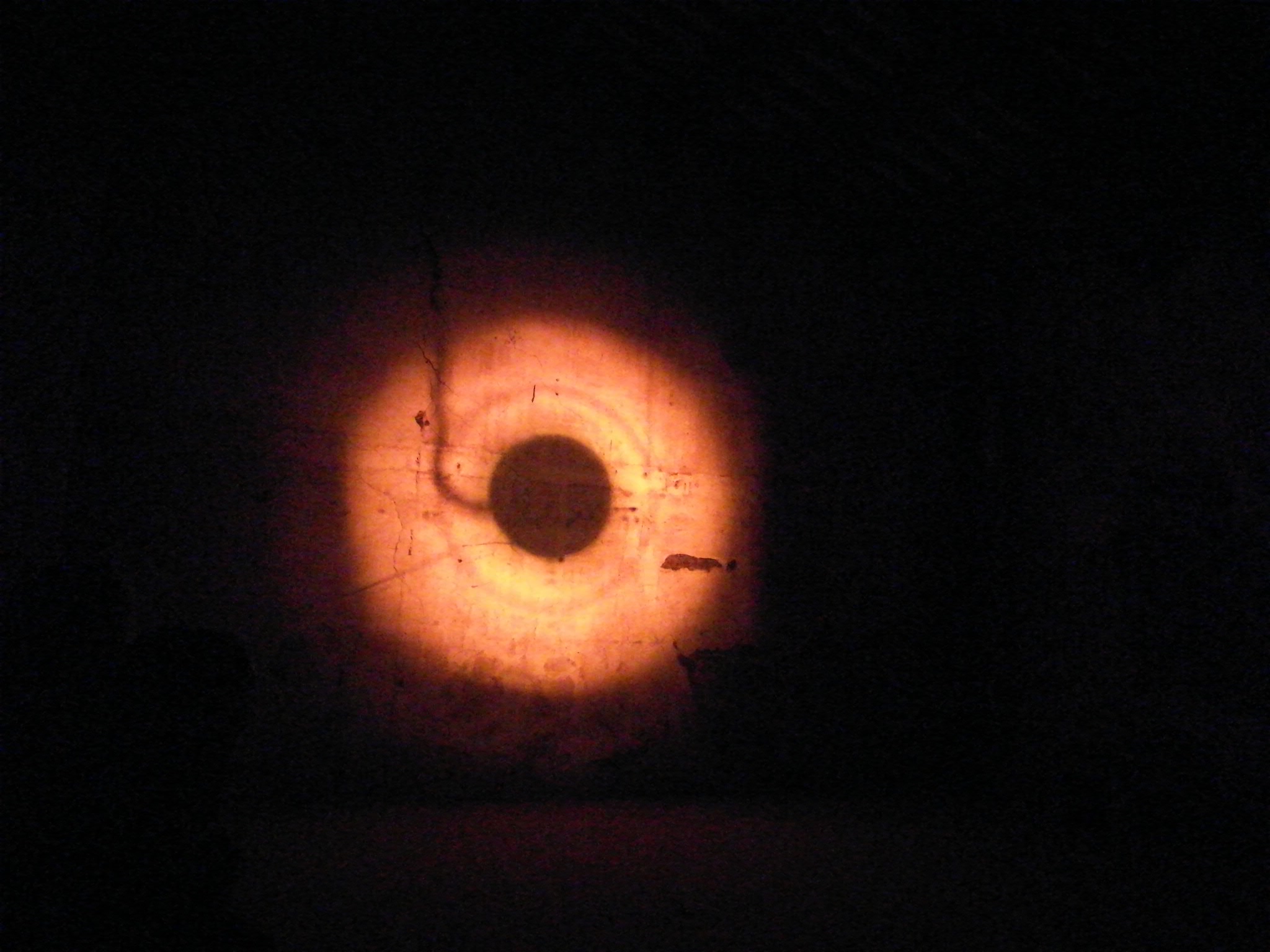 Auf einer großen Leinwand wird orakelt, bevor man eine dunkle Halle, eine Art fünfschiffigen Sakralbau im Sannierungszustand betritt, deren Empore einen Ausblick auf das Environment, das nun durch Spiegel und eine weite Wasserfläche verzerrt ist, bietet. Eine Initiationserfahrung?