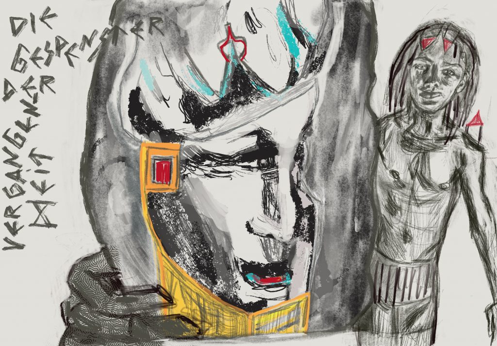 Digitale Kunst, ganz ohne KI! ich bin von den Interpretationsmöglichkeiten dieses Bildes selbst überrascht. Die verschiedenen möglichen Lesarten des Bildes, die jeder für sich selbst entdecken mag, können durchaus interessante Widersprüche beinhalten. Diese Bild-Botschaften sind jenseits einer bewussten Planung durch mich „passiert“, weshalb ich als individuelle Künstlerin überrascht vor dem Bild zurücktreten muss.