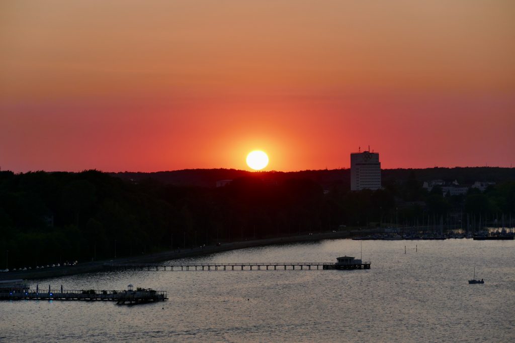 Baulich wird die Kieler Innenstadt im Moment aufgewertet, indem architektonisch die Einkaufsstraße mit dem Hafenbereich verbunden wird. Nicht schlecht, doch scheint mir auch dies nicht für die Ewigkeit konzipiert zu sein und ich befürchte, dass das, was jetzt neu und attraktiv aussieht, in spätestens 50 Jahren auf uns ähnlich unbehaglich wirkt, wie jetzt schon die Architektur der 70er und 80er Jahre. Danach hielt ich mich noch kurz im kleinen Schiffahrtsmuseum in der ehemaligen Fischhalle auf, was aber, bedingt durch eine schreckliche Kombination von Hitze und dem Tragen von Gesichtsmasken ein sehr kurzer Besuch blieb. Der Schloßpark war dann schon attraktiver. Hier fand ich ein schattiges Plätzchen unter alten Bäumen, wo ich entspannt die Zeit bis zum Einchecken abwarten konnte.