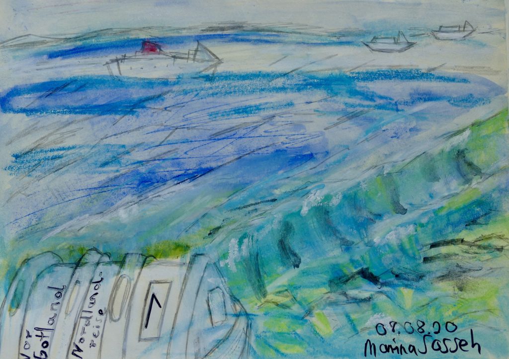 An Bornholm und Gotland, was sich kaum vom Meer abhebt, und dessen Namen sich auf den dort lebenden germanischen Stamm der Goten bezieht. vorbei, fahren wir weiter in Richtung Schweden, derweil ich mich auf das Sonnendeck setze und die Weite genieße, wo die Gedanken unbegrenzt umherschweifen können, ohne dabei vom ständigen Diktat des Müssens im Zaun gehalten zu werden.