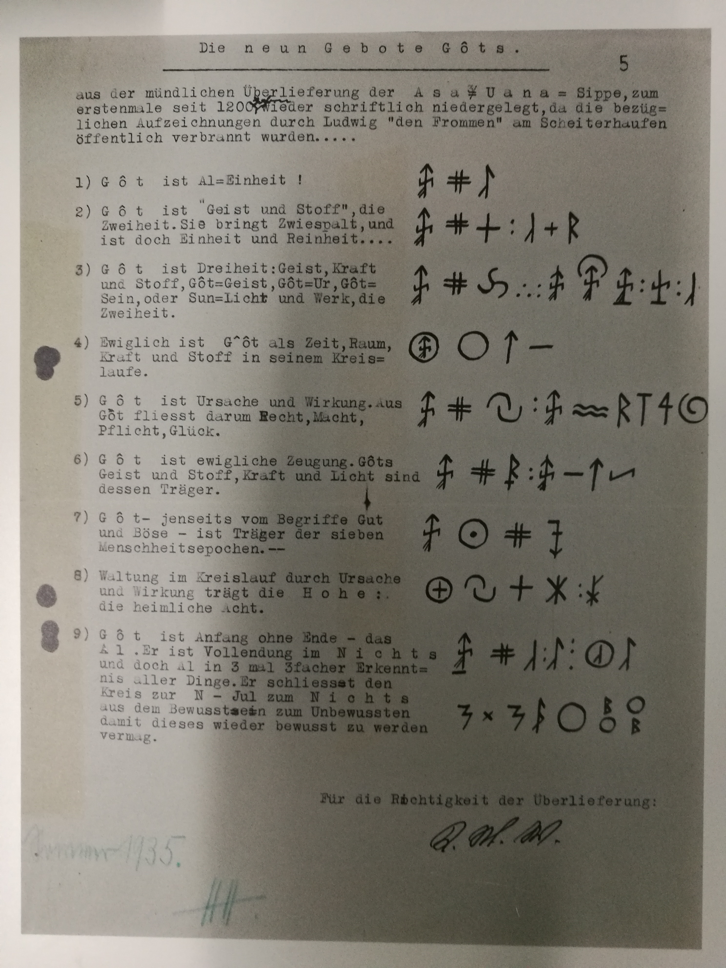 Es gab den Plan, die Häuser des gesamten Ortes mit neu-heidnischer Symbolik zu versehen. Der damalige Pastor wehrte sich dagegen, weshalb das Haus, neben Armanen-Runen (inkl. Binderunen) und volkstümlich anmutenden Dekor, auch einen christlichen Spruch anzeigt.