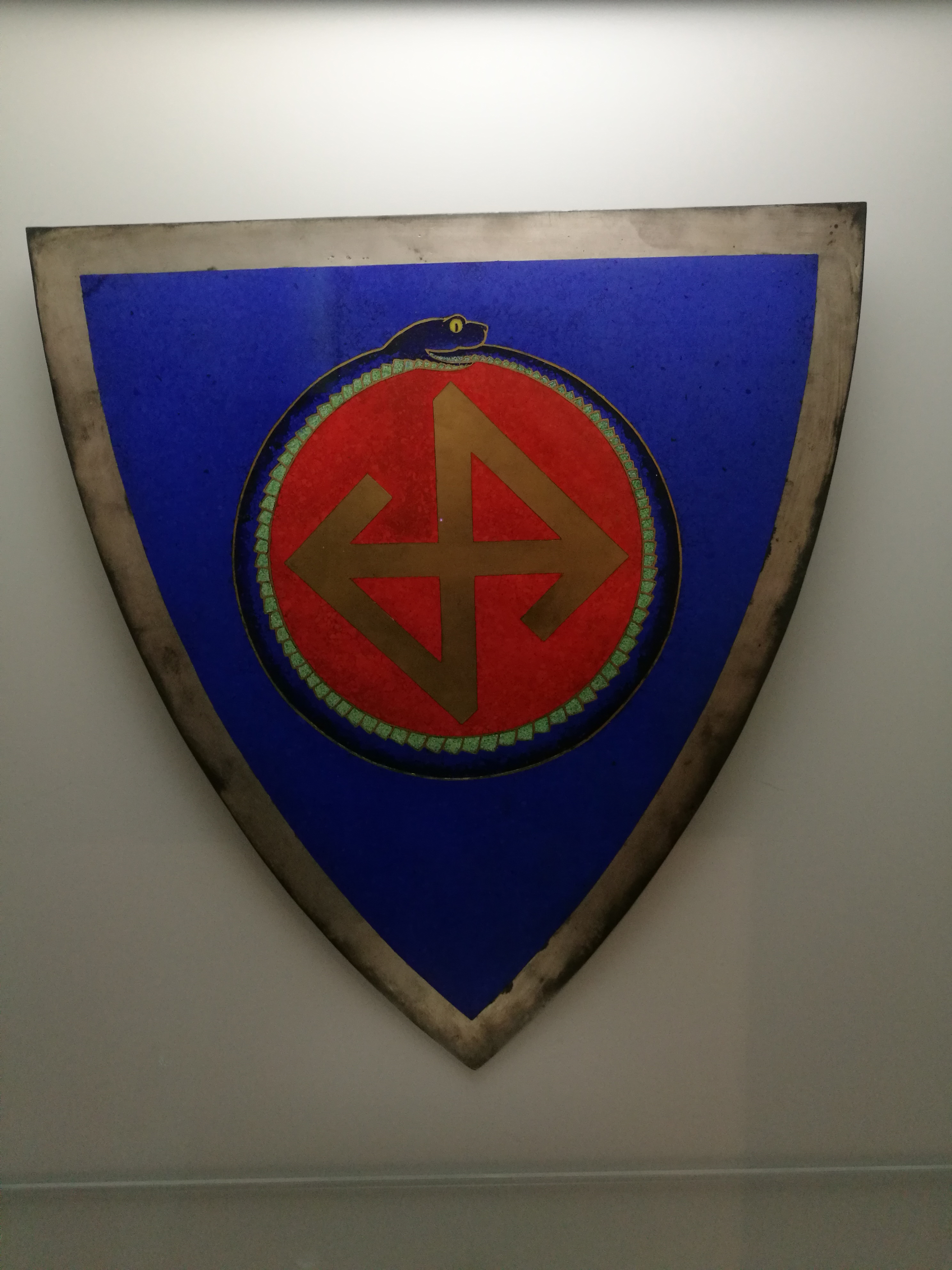 An der Häuserfassade befinden sich keltisch und germanisch inspirierte Zeichen wie Schangenornamente, Sonnenräder, aber auch ein Drache