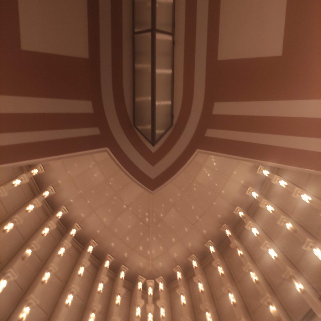 Eigentlich hätte ich den Filmbesuch bedauern können, zumal das eigentliche Kino geschlossen war und die Ersatzveranstaltung mit Beamer-Leinwand nun auch nicht überzeugend war (mein Fernseher ist auch nicht viel kleiner) , wenn denn nicht die expressionistische Architektur in der ehemaligen Eingangshalle des Anzeiger Hochhauses mich nicht fasziniert hätte. Wie grandios kann Architektur sein. Auf dem Rückweg im Auto höre ich dann “Panic in Babylon”. Lee “Scratch” Perry singt u. a. “police”,”thieves”, “soldiers” und “Panic German Governement”.