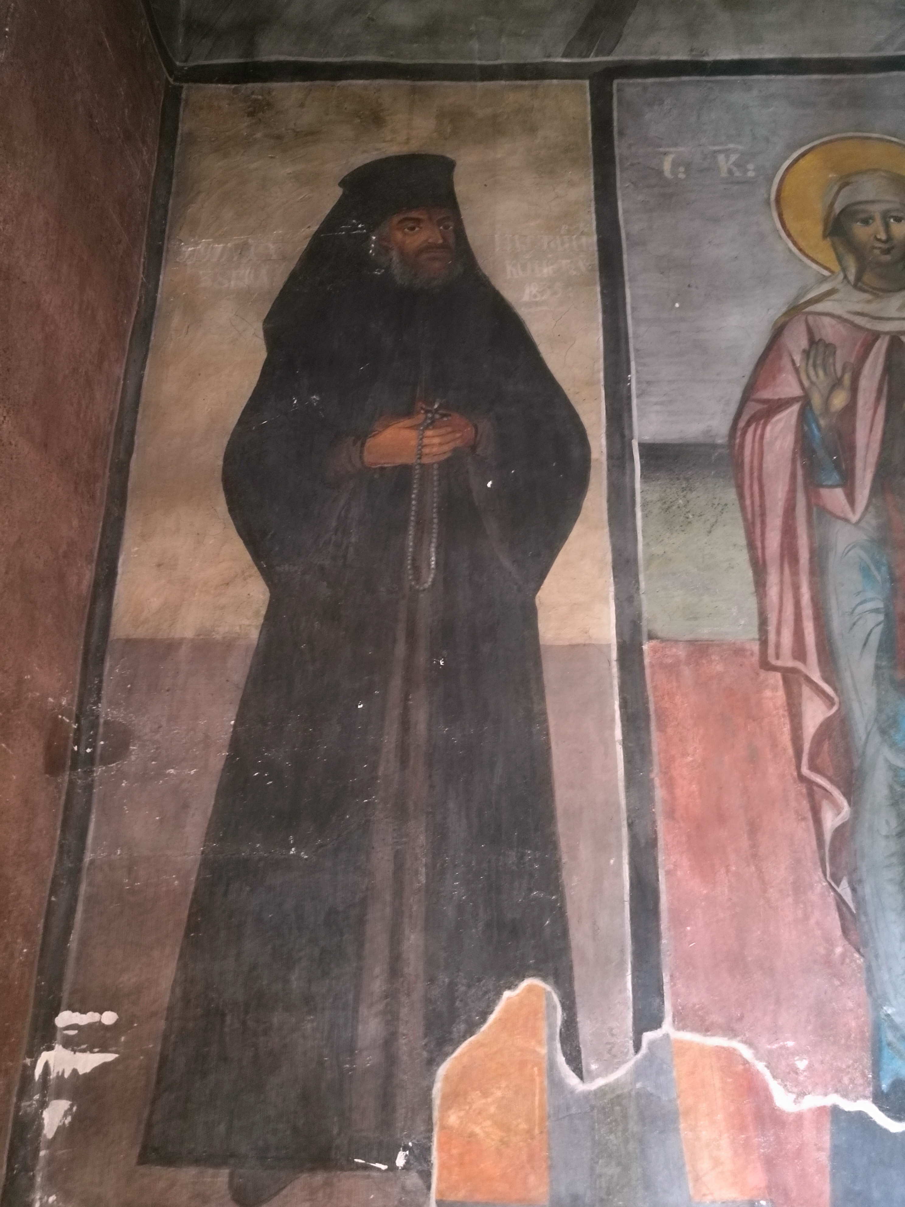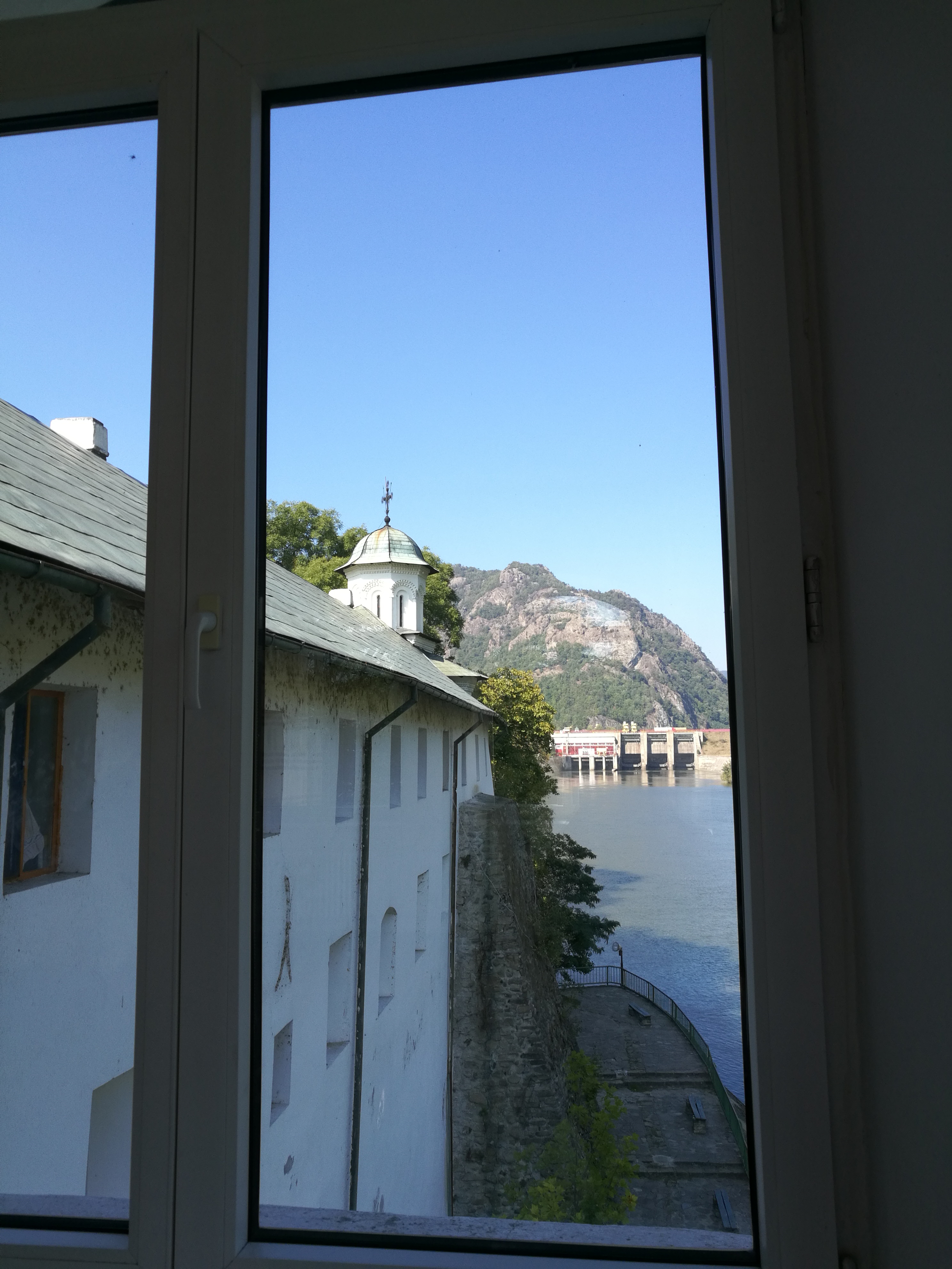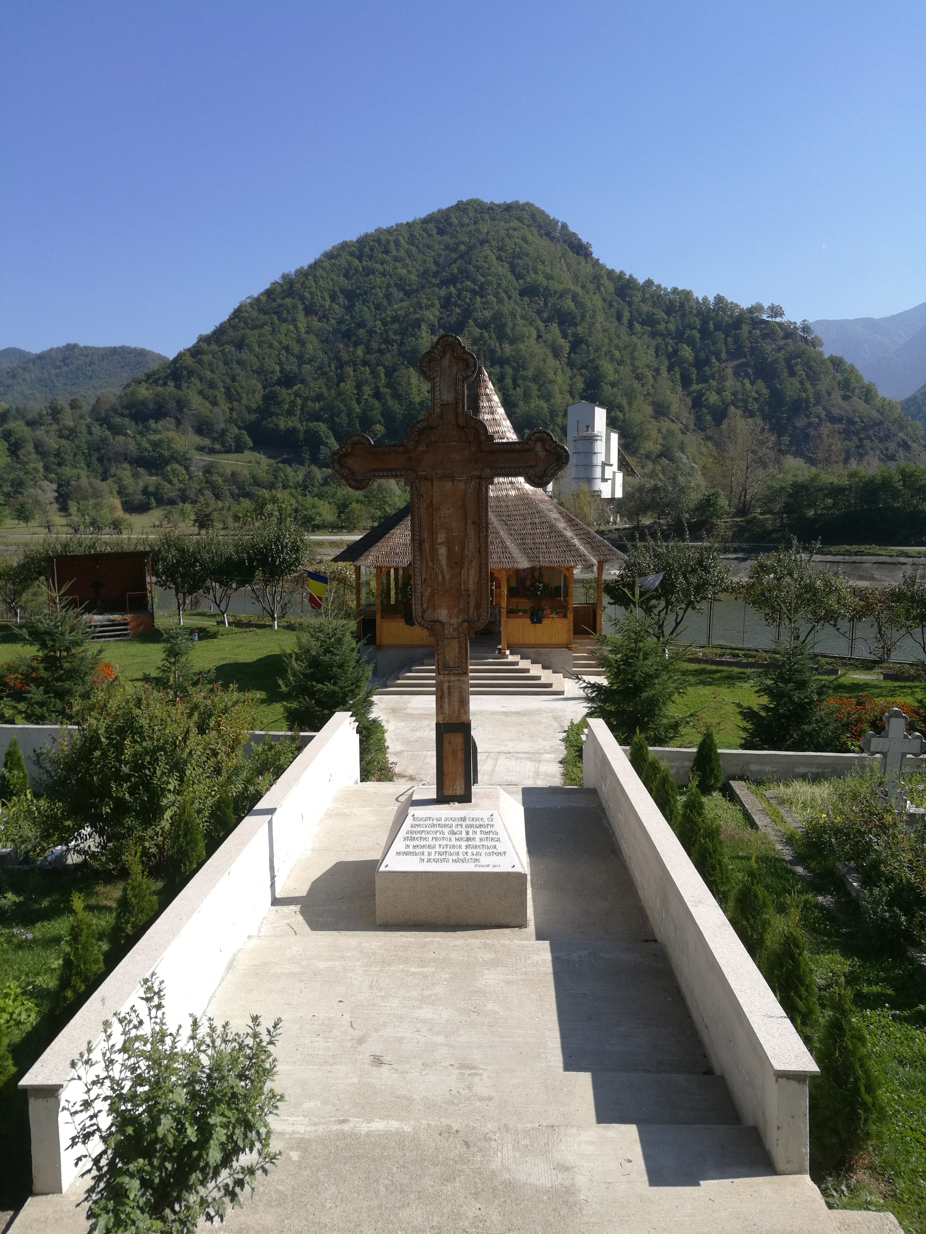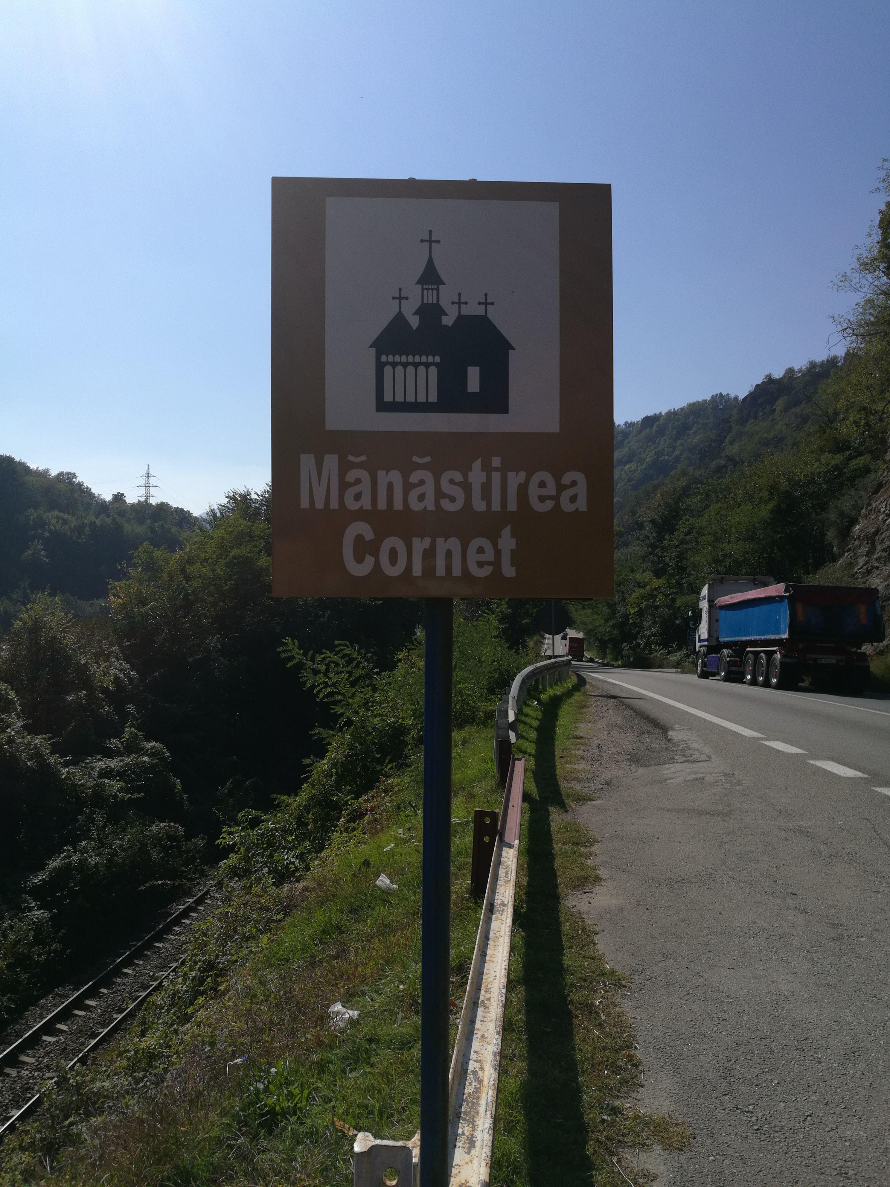 Während unser Fahrer nun mit der organisatorischen Abwicklung beschäftigt waren, nutzten wir die Zeit, um uns ein weiteres Kloster anzuschauen, schließlich war der Unfall direkt vor dessen Einfahrt passiert. Dies war dann, im Gegensatz zu Cozia, ein Frauenkloster, das die Besonderheit aufwies, dass unterhalb der Klostereinfahrt Bahnschienen verlegt worden waren. Ein kleines Schild klärte uns darüber auf, dass es sich dabei um ein historisches Monument handelt.