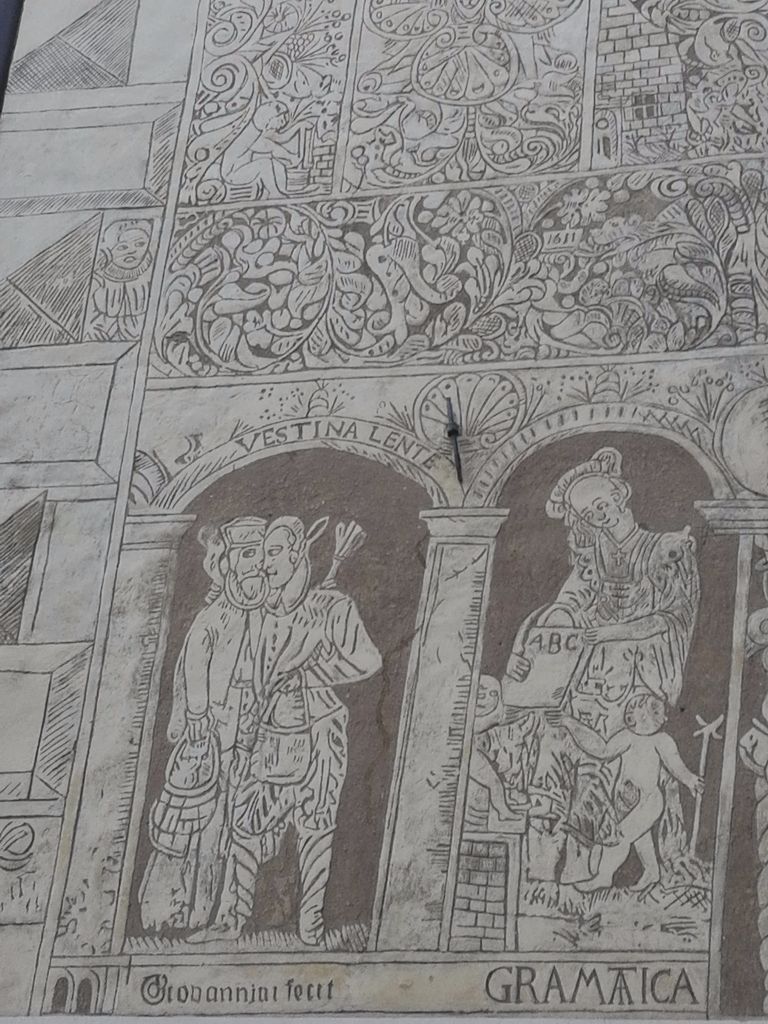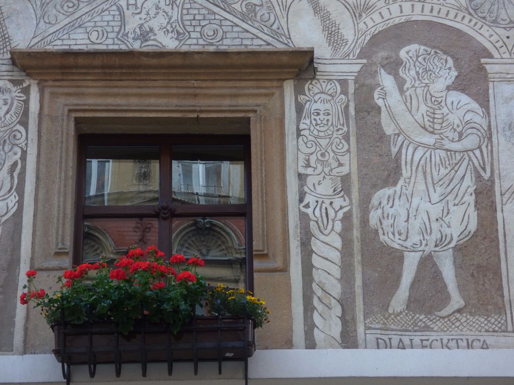 Es ist aufwändig mit Sgraffito-Dekorationen, die in der Altstadt aber auch noch an anderen Häusern zu bewundern sind, verziert.