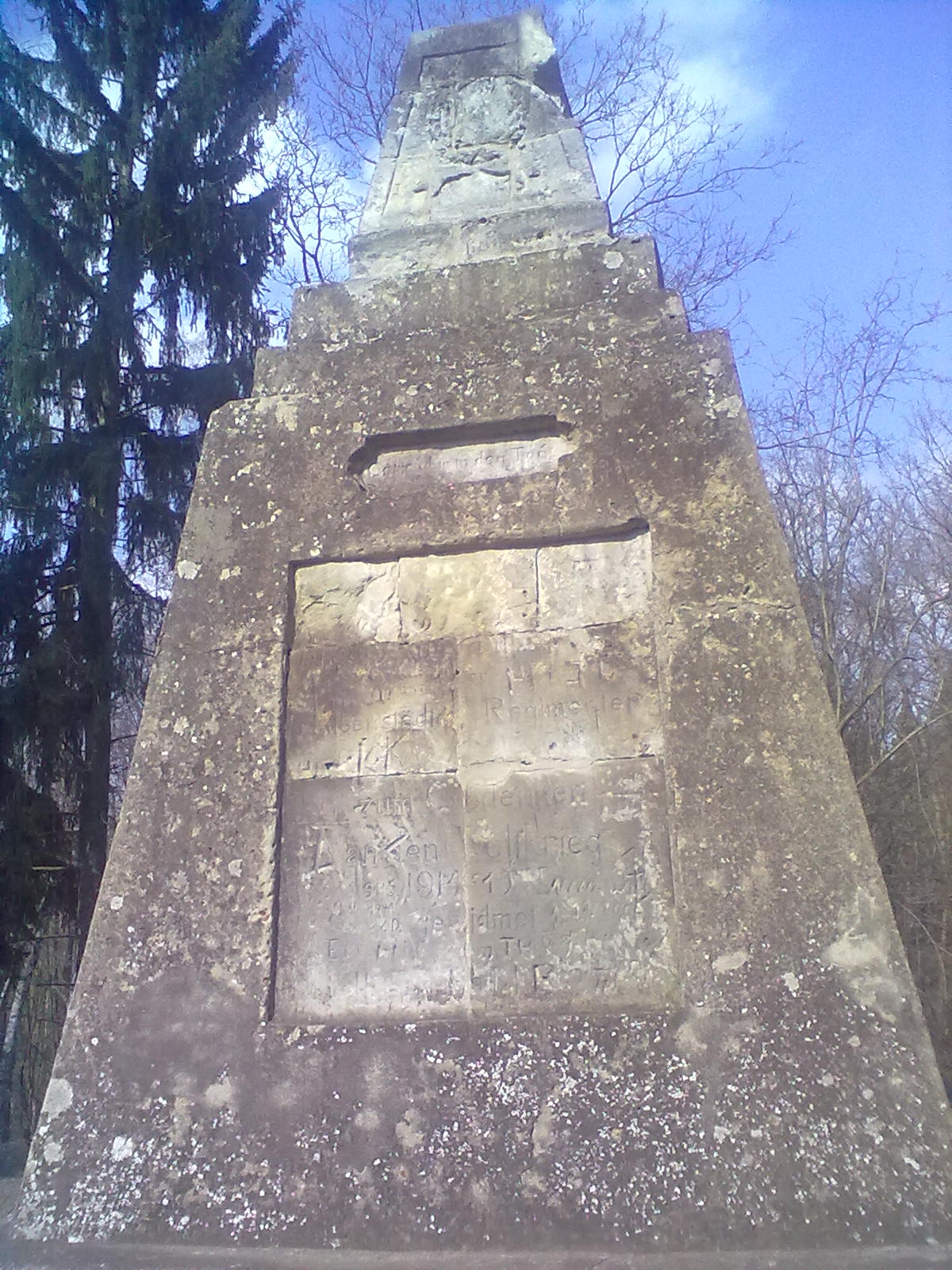 Die Beschriftung ist kaum entzifferbar, ein nettes Ehepaar klärte uns aber darüber auf, dass es sich hier um die Meding-Schanze handelt. Dort wurde während des Ersten Weltkriegs 1916 ein von Hauptmann Werner von Meding und unter seiner Leitung bebautes System aus Schützengräben angelegt, das der Zivilbevölkerung – gegen Eintritt – einen Einblick in das Kriegsgeschehen, insbesondere in dem damals neuartigen Stellungskampf, geben sollte. Ein Verein ist gerade dabei die Schützengräben zu rekonstruieren, weswegen man sich auch heute noch hinter dem eigentlichen Denkmal, dass 1919 – sozusagen nachträglich – für die Gefallenen der Halberstädter Garnison errichtet wurde, hautnah in die Zeit des 1. Weltkriegs zurückversetzen lassen kann. Detaillierter Infos finden sich hier.
