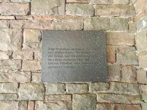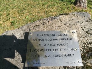 Den Soldaten der Bundeswehr, “die im Dienst für die Bundesrepublik Deutschland ihr Leben verloren haben” (s. Plakette/Bild( wird dort genauso gedacht, wie auch vergangenen Opfern der deutschen Kriege.