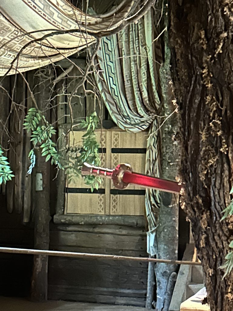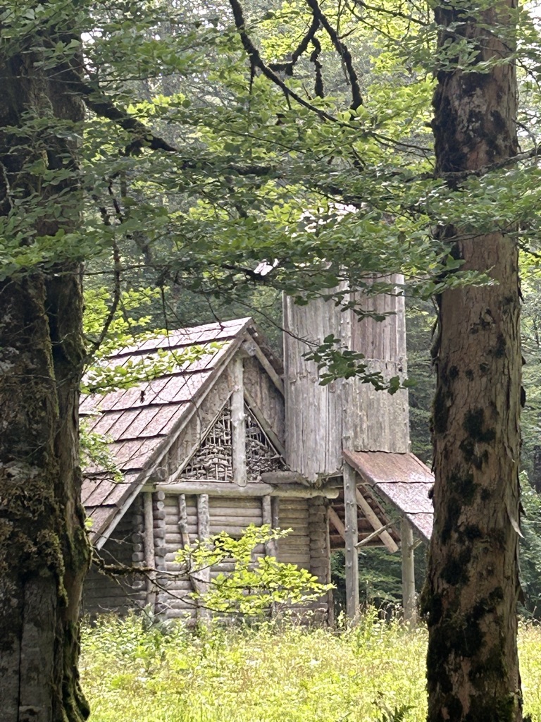 Auch die Hundinghütte ist von einer Wagner Oper inspiriert. Sie wurde nach einer Beschreibung eines Szenenbildes zur „Walküre“ von Richard Wagner errichtet. Auch hier hat sich der König in Richard Wagners Gralsträume hineinbegeben. Besonders die Weltenesche im Innern der Hütte hat mich beeindruckt. Das Schwert Nothung prangt im Stamm und wartet darauf, daß ein wahrer Held, wie Siegfried es einer war, es hinauszuziehen vermag.