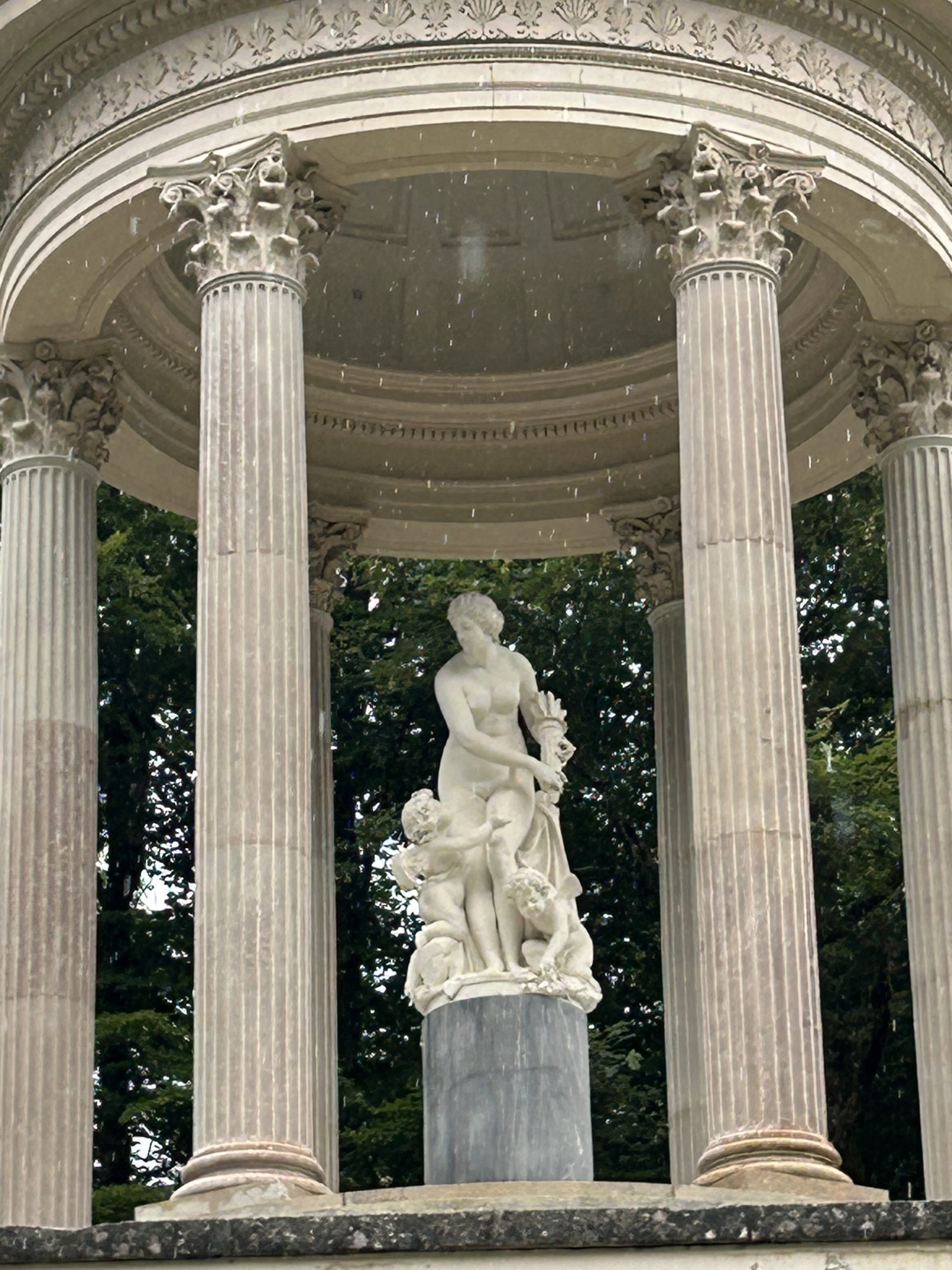 In einem Musikpavillon picknickten wir, während wir nicht nur die beeindruckende Achsenperspektive zum gegenüberliegenden Venustempel genossen, sondern auch der ein oder anderen Besuchergruppe begegnen durften.