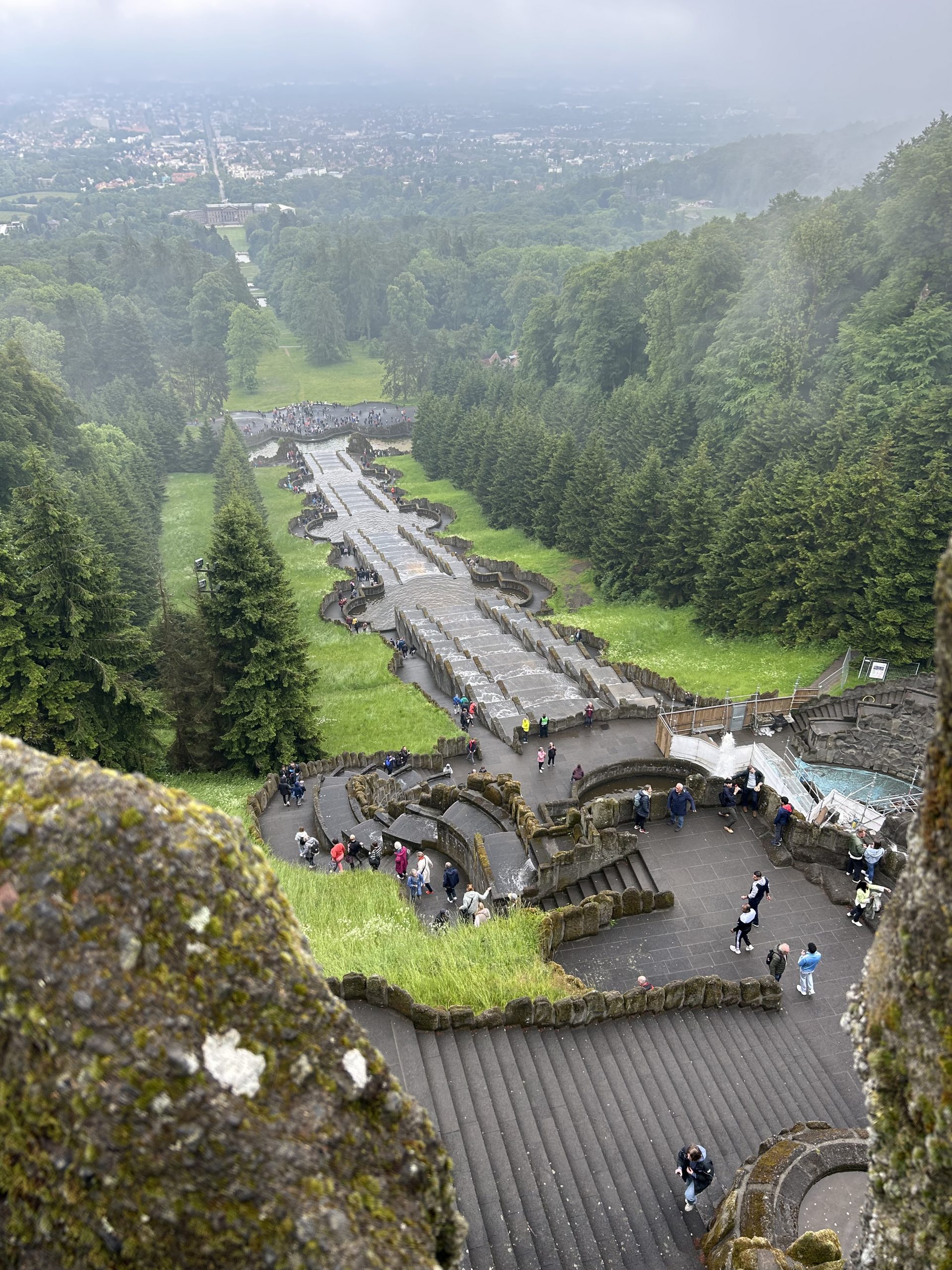 Pünktlich um 14:30 Uhr setzte sich die berühmte Wasserkunst in Gang. Ich ging los – hinunter durch das barocke Theaterspiel aus Kaskaden, Becken, Fontänen. Es war einer dieser Tage, an denen sich das Wetter nicht recht entscheiden will: zwischen Regenschleier und heiteren Momenten, zwischen Düsternis und Glanz. Und gerade das machte ihn perfekt.