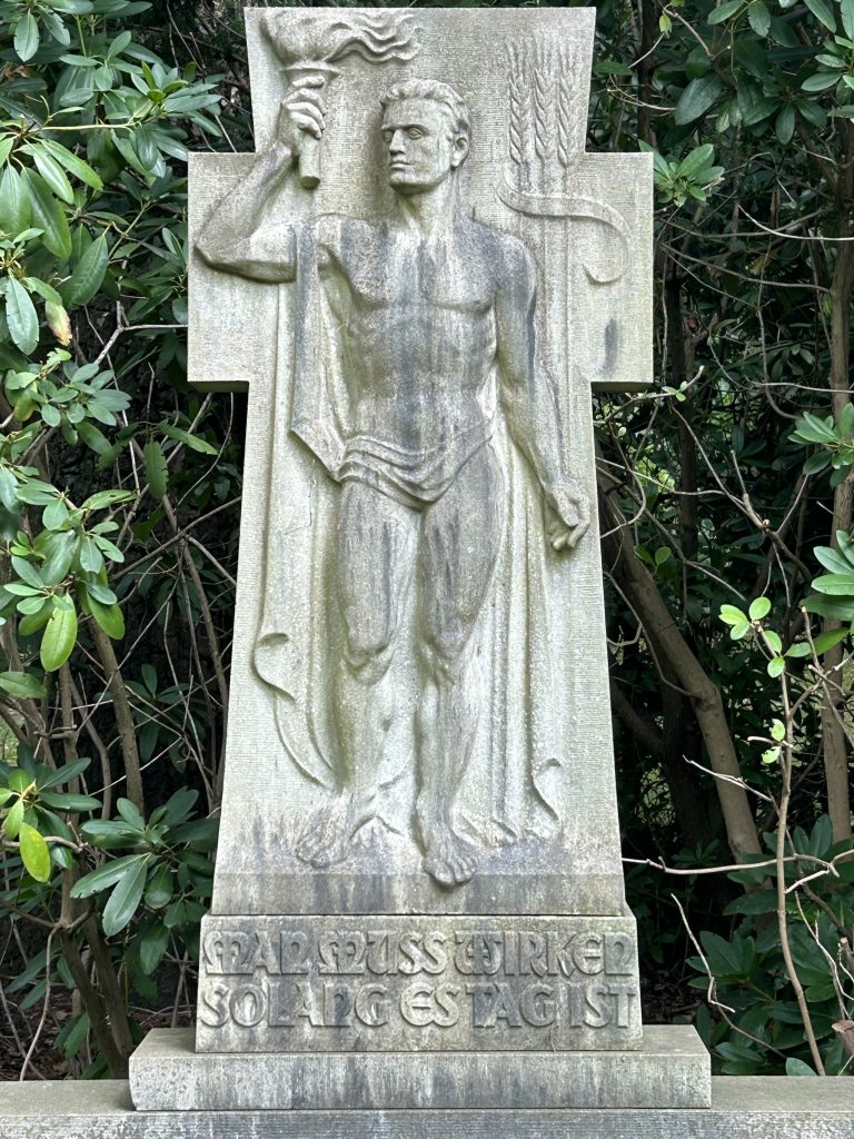 Auf dem Ohlsdorfer Friedhof ist diese Lebensreise, die ich mir selbst beschaulicher und kontemplativer wünsche, für viele Menschen zum Ende gekommen und wenn wir Friedhöfe besuchen, dann immer auch, um uns mit unseren Ahnen zu verbinden und auch, um uns der eigenen Vergänglichkeit zu erinnern, um hernach in einem Alltag zurückzukehren, den man dann nicht mehr dem verbissenen Ernst wie zuvor zugesteht und so hernach den Pausen mehr Wertigkeit zugesteht, als den, was sich gut als tägliches Ticktack in Worte fassen lässt.