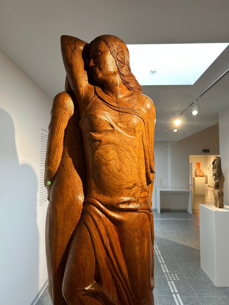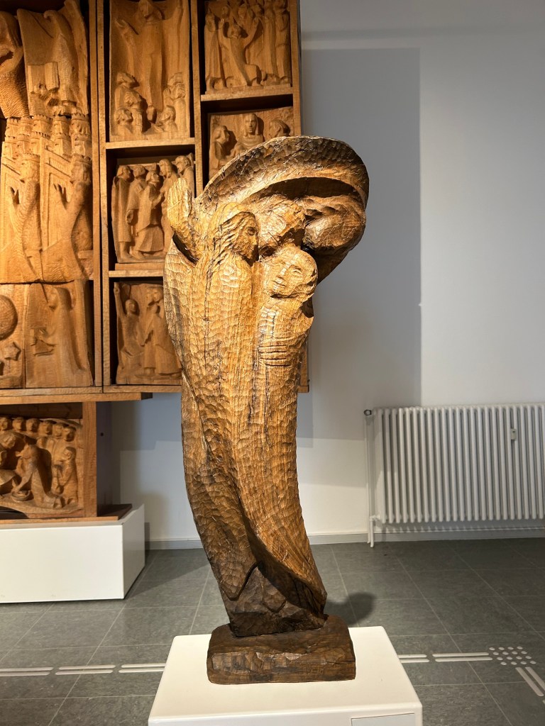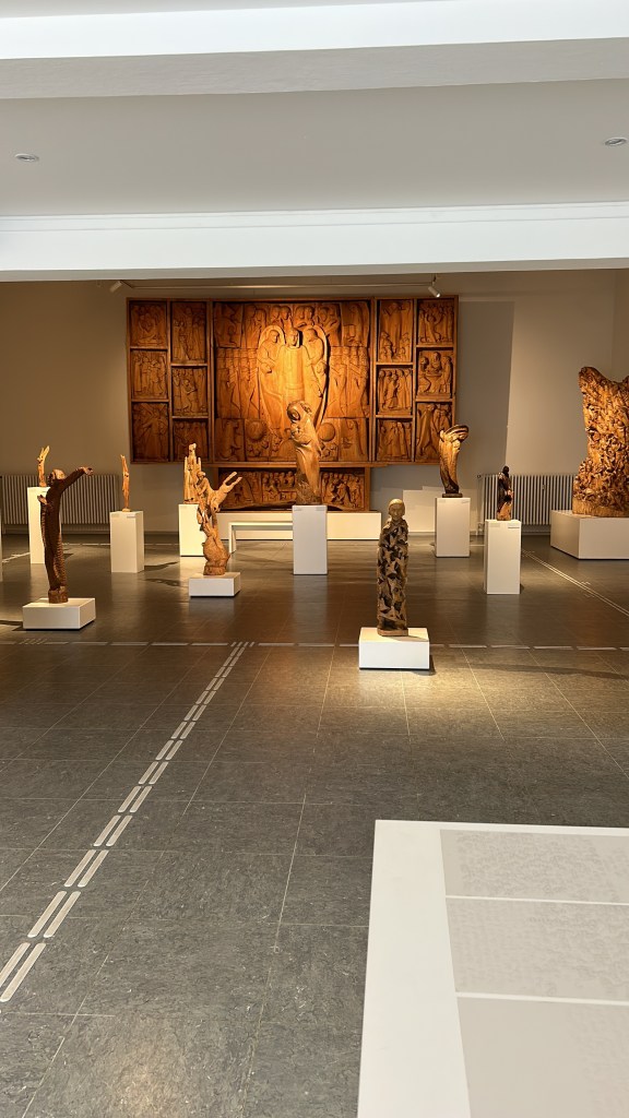 Als ich von der Rückreise aus Grömitz einen Halt in Bad Segeberg einlegte, hatte ich Glück, schließlich fand im ehemaligen Wohnhaus des Künstlers und des Ehepaars Burmesters gerade eine Finissage zu einer Ausstellung von Holzskulpturen von Hans-Ulrich Kittelmann statt. Dies wiederum führte, neben den Genuss der Ausstellung, zu weiteren interessanten Begegnungen. Ein Herr spielte die Maultrommel und ein anderer erzählte von der Freude, die ihm die Digitalisierung der Zeichnungen von Otto Flath bereitet hat und so war es insgesamt ein zauberhaft und inspirierender Nachmittag, den ich in Bad Segeberg erleben durfte.