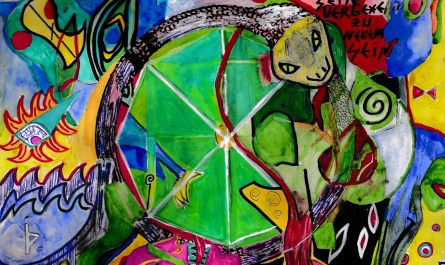 Aufmerksam auf Otto Flath wurde ich durch Ulrike Wallis, mit der ich die große Holzskulptur von Peter Lampasiak in der Michael-Kirche in Hannover als künstlerische Inspiration für tänzerische Entdeckungen erfahren habe. Peter Lampasiak Schnitzerei stellt Michael, den Namensgeber der Kirche, im Drachenkampf dar. Dies ist ein Motiv, was ich auch bei Otto Flath wiederfand.