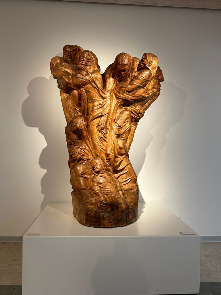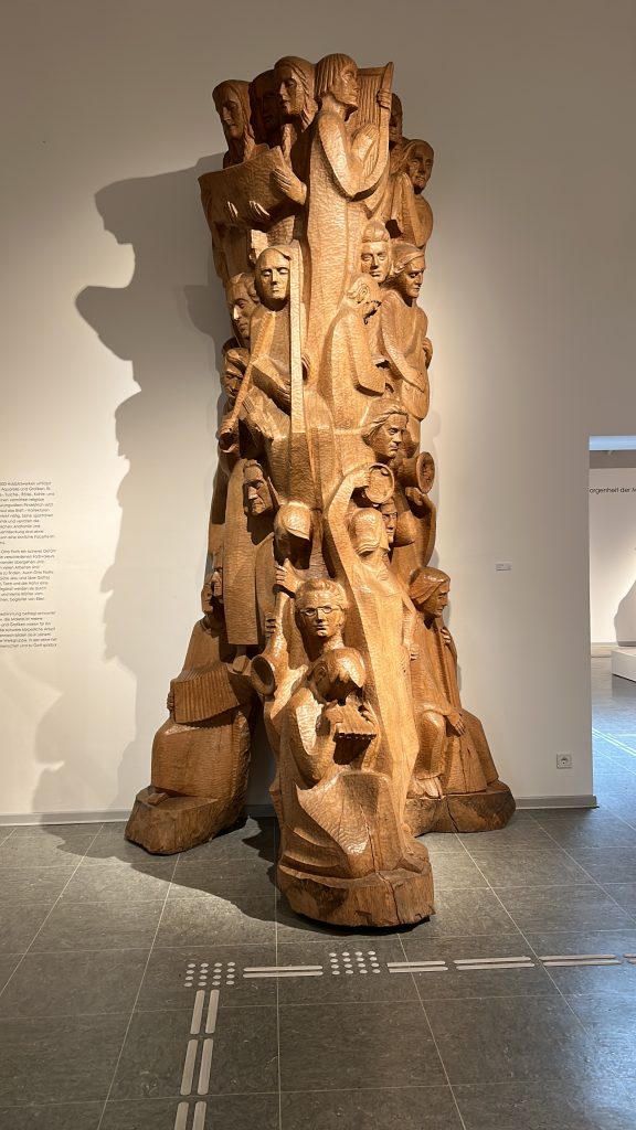 Als ich von der Rückreise aus Grömitz einen Halt in Bad Segeberg einlegte, hatte ich Glück, schließlich fand im ehemaligen Wohnhaus des Künstlers und des Ehepaars Burmesters gerade eine Finissage zu einer Ausstellung von Holzskulpturen von Hans-Ulrich Kittelmann statt. Dies wiederum führte, neben den Genuss der Ausstellung, zu weiteren interessanten Begegnungen. Ein Herr spielte die Maultrommel und ein anderer erzählte von der Freude, die ihm die Digitalisierung der Zeichnungen von Otto Flath bereitet hat und so war es insgesamt ein zauberhaft und inspirierender Nachmittag, den ich in Bad Segeberg erleben durfte.