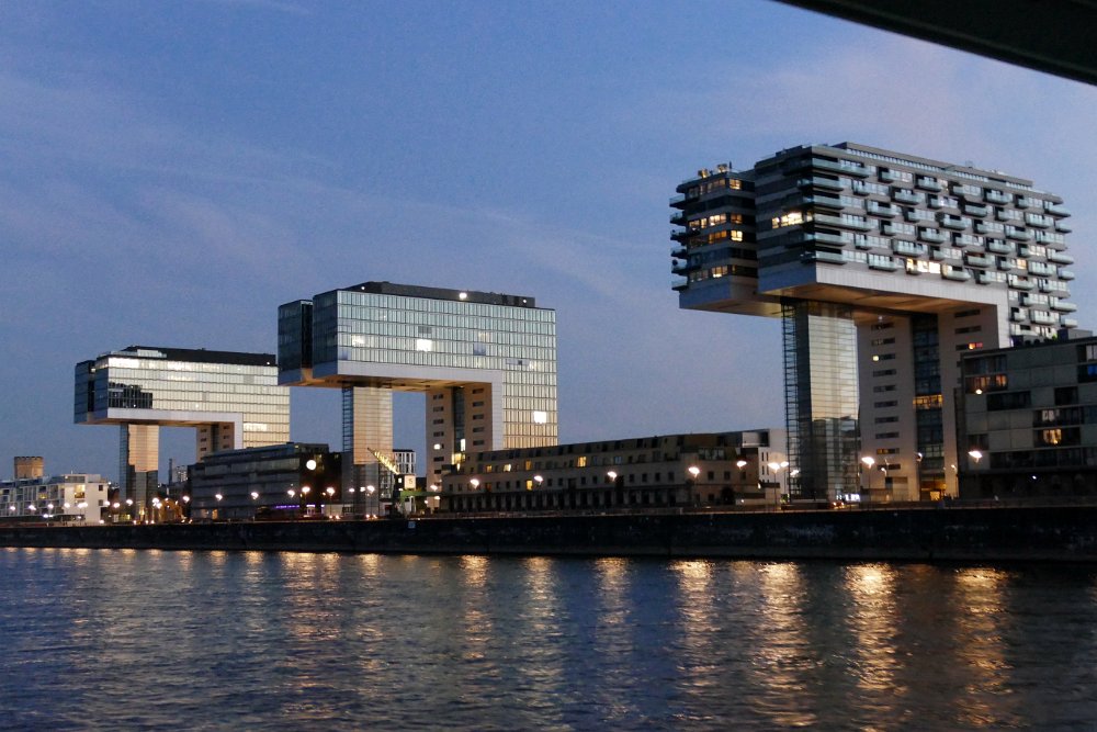 Meine Kabine ist zwar sehr klein, bietet mir aber ein großes Panoramafenstern, sodass ich, bequem auf dem Bett liegend, den Blick auf den Uferbereich mit seinen Anglern, Campern und den pittoresken Stadtansichten oder den dystopischen Industrieanlagen in Leverkusen genießen kann.