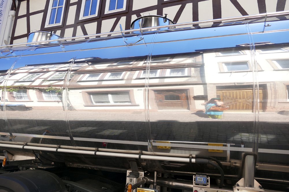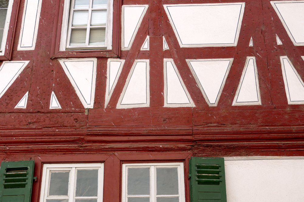 (19.07) Der Tag beginnt mit einem Frühstück, das – recht stilvollendend – am Platz serviert wird. Mittlerweile sind wir in Wertheim angekommen, wo wir eine Stadtführung gebucht haben. Die Führerin erfreut uns mit Anekdoten zu stadtgeschichtlichen Besonderheiten, an denen wir – ohne Führung – wohl achtlos vorbeigelaufen werden. Sie weist uns u.a. auf die Steinmetzzeichen an den Häusern hin und zeigt uns auf dem Marktplatz ein kleines Fensterchen, aus dem die Frau des Bäckermeisters in früheren Zeiten den Marktplatz inspiziert haben soll.