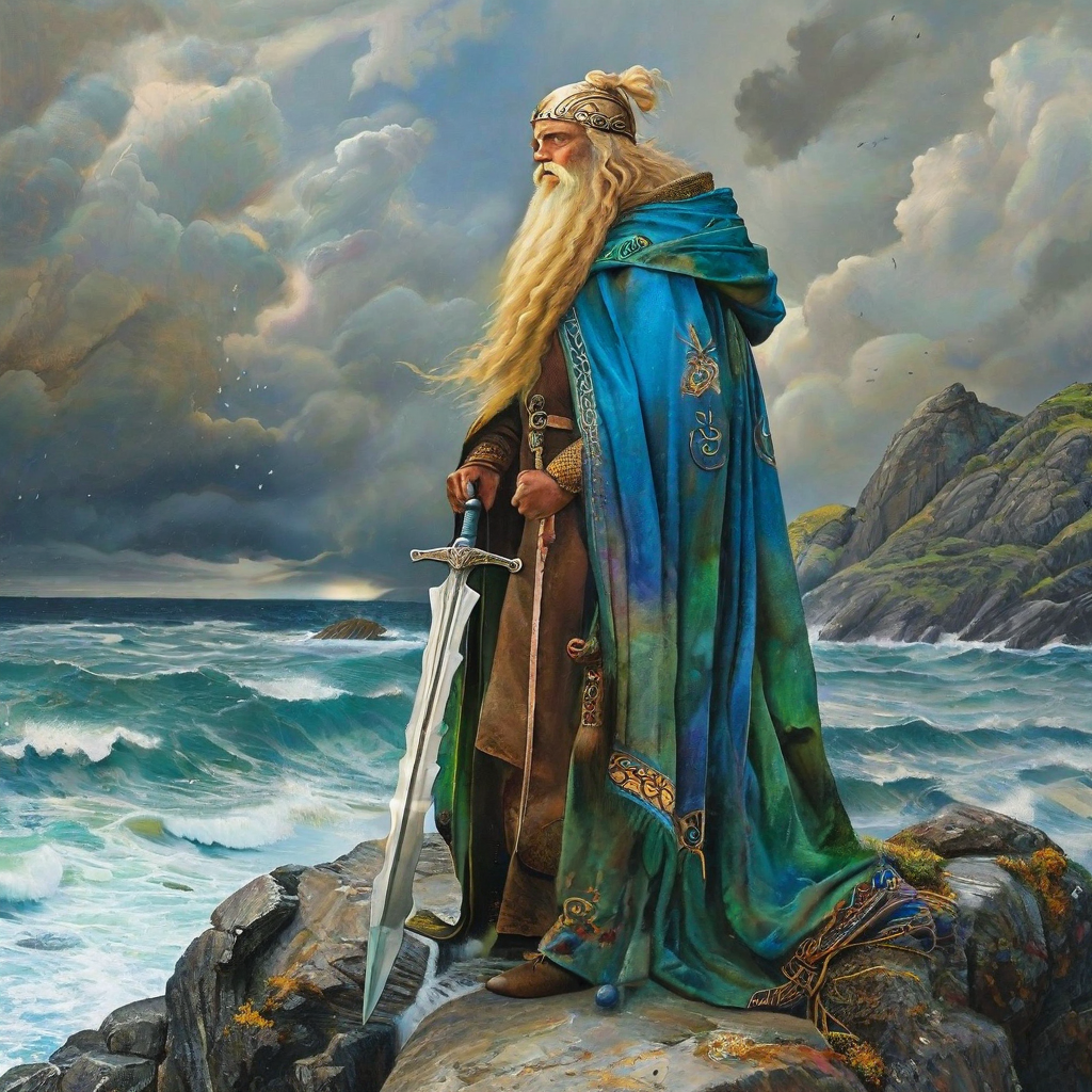 Manannán Mac Lir ist in der keltischen Mythologie der Herr der Anderswelt und Führer der Seelen ins Jenseits. Sein Reich liegt jenseits der Nebel, verborgen auf magischen Inseln, wo Zeit und Sterblichkeit keine Bedeutung haben.